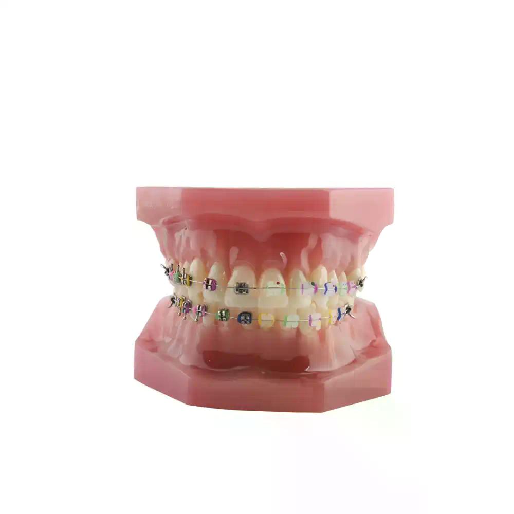 Study typodont with metal brackets and sapphire.