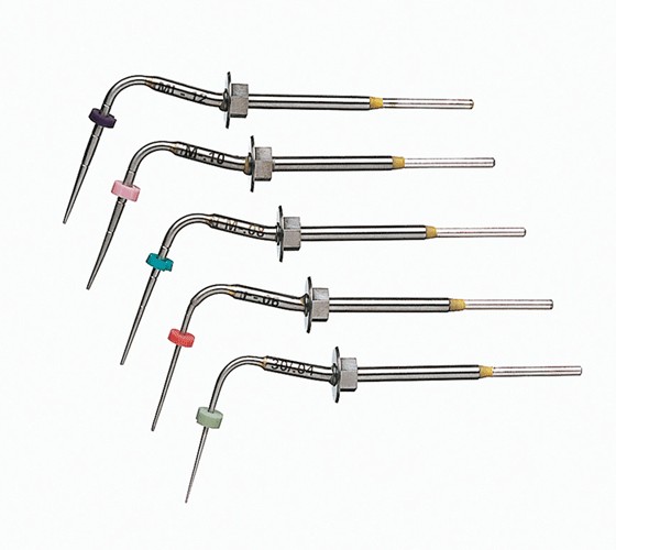 Buchanan handles, featuring both a sharp nickel-titanium end and a stainless steel end, can be used in any common obturation technique, including cold or heat condensation. The handles are also ideal for coronal filling of the canals. Use the NI-TI end to finish the condensation processes even in highly curved canals. Either end can condense and control the movement of gutta-percha under pressure. Additionally, Buchanan hand handles are made from the highest quality materials to ensure excellent durability and sterilization.