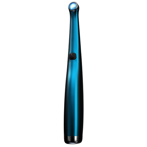 LED curing light for photo-curing all types of light-activated dental materials, such as composites, adhesives, sealants, etc. Its new 12 mm head features a front and rear on/off button. It allows for 50% more curing area. 12 mm diameter of the head. Collimated light beam. Three curing programs (standard, high power, and Xtra power). Battery-operated, wireless. Rechargeable iron phosphate and lithium batteries. Slim body made of aerospace aluminum. Body coated with Teflon. Blue color.