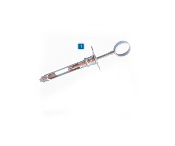 Chrome-plated metal syringe with a harpoon aspiration system. Easy to use and comfortable. Finger grip with wings to enhance tactile control. Thumb ring.