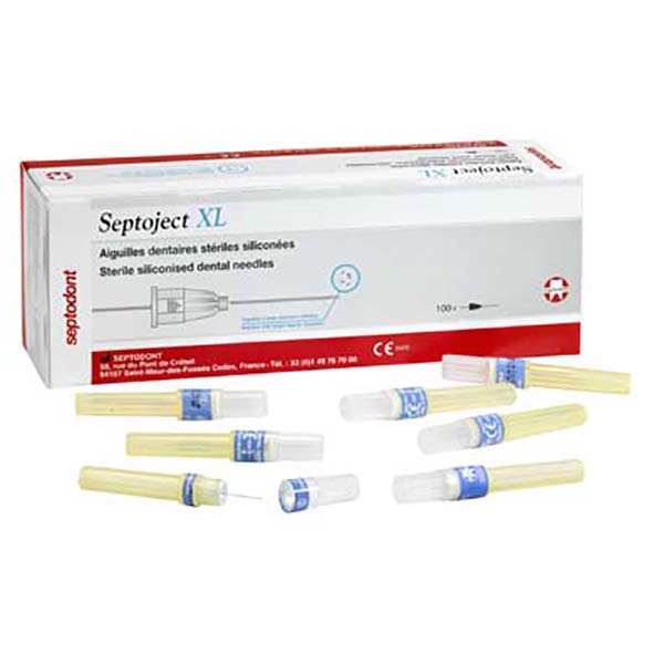 Sterile disposable needle with a larger gauge for the routine administration of local dental anesthetics. The larger gauge (43% wider than a standard needle) requires less effort when administering the injection. Reduced tissue trauma achieved through a triple-beveled needle, a smooth silicone cannula, and optimal needle flexibility. High-grade surgical stainless steel tubes that decrease the risk of breakage. With a bevel indicator that allows for proper orientation of the bevel during injection.