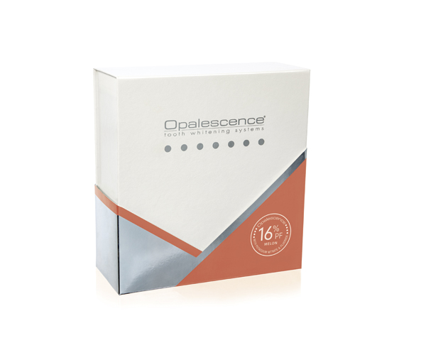 Dental whitening system with different concentrations of carbamide peroxide 10% - 16% with potassium nitrate and fluoride. It has a sticky and viscous consistency that prevents leakage outside the tray. PATIENT KIT: 8 x 1.2 ml (150 g) Opalescence PF + 1 x 30 ml (28.3 g) Opalescence toothpaste + 1 pocket case for trays + 1 Opalescence bag + 1 colorimeter. Melon flavor. Application time: 4-6 hours. EXCLUSIVE SALE TO DENTISTS.