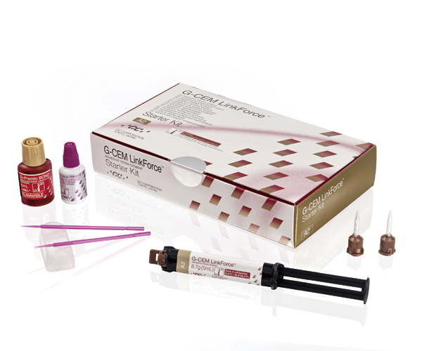 G-CEM LinkForce es fotopolimerizable o autopolimerizable, según la elección del clínico, y presenta una elevada fuerza de adhesión gracias a una fotopolimerización eficiente del adhesivo. Forma una fina capa de 3 µm que no interfiere en el ajuste de la corona. Su autopolimerización es efectiva y ofrece una fotopolimerización óptima del cemento de resina. Está especialmente indicado para el cementado de carillas y es particularmente útil cuando se cementan restauraciones opacas o gruesas. El cemento es estético y estable a lo largo del tiempo. Ofrece fluorescencia natural y estabilidad de color. Contenido: G-CEM LinkForce A2 jer 8.7g (5ml) x 1, GC Automix Tip Regular x 20, G-Multi PRIMER (5ml) x 1, G-Premio BOND (5ml) x 1, y accesorios.