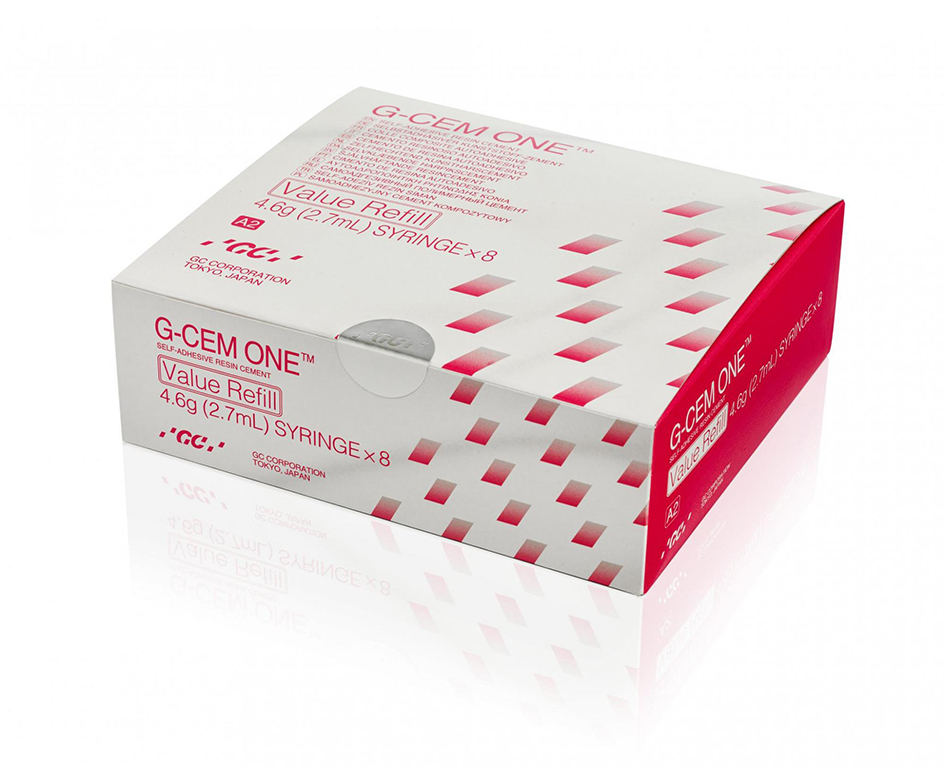 G-CEM ONE is a self-adhesive resin cement developed to meet the cementation needs of any type of indication. The G-CEM ONE system is the universal cementation solution that combines the G-CEM ONE syringe, providing effective adhesion for a wide range of indications, and an Adhesive Enhancing Primer (G-CEM ONE Adhesive Enhancing Primer) that is used in cases of low retention. Contents: 8x G-CEM ONE Jer A2 (4, 6g), 60x GC Automix Regular Tips, 20x GC Automix Endo Tips.
