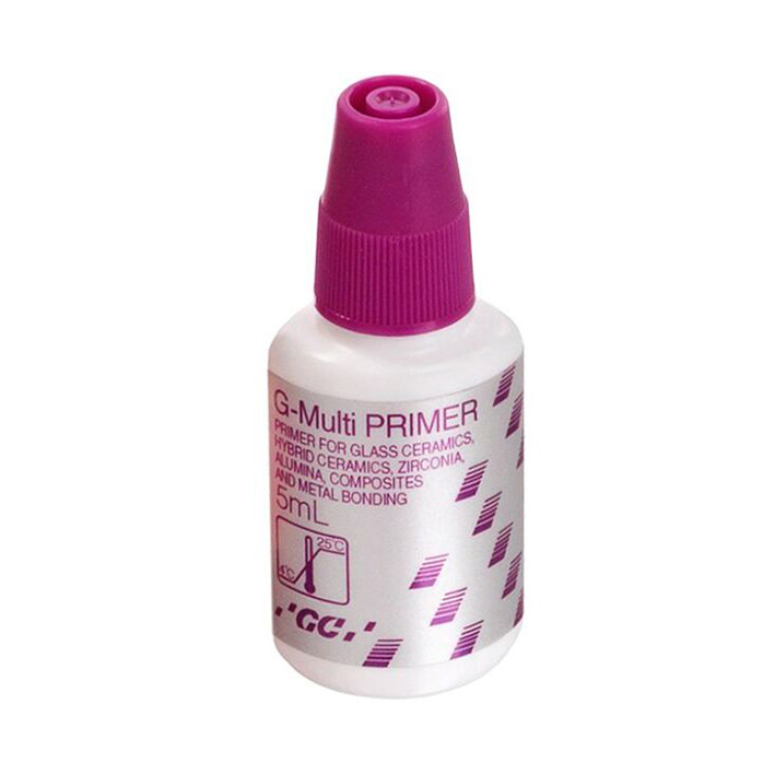 G-Multi PRIMER is a priming agent designed for the treatment of the adhesive surface of glass ceramics, hybrid ceramics (e.g., CERASMART), zirconia, alumina, composite, and metal restorations. It promotes a strong bonding force to resin-based materials as well as resin-based cements in cementation procedures, direct composites, and in cases of repairs. A single primer for all substrates, G-Multi Primer utilizes three different chemical agents to ensure perfect adhesion in any situation. The stability of the adhesion is achieved by incorporating silane into the primer, not into the adhesion itself.
