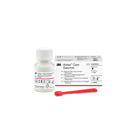 Cimento de vidro ionómero para cimentações de próteses fixas, bandas de ortodontia, pernos, etc. Radiopaco, espessura de película 15 M. Biocompatível, adesão química ao esmalte e à dentina, baixa solubilidade e sem contração. Nova fórmula granulada. Mais fácil de misturar.