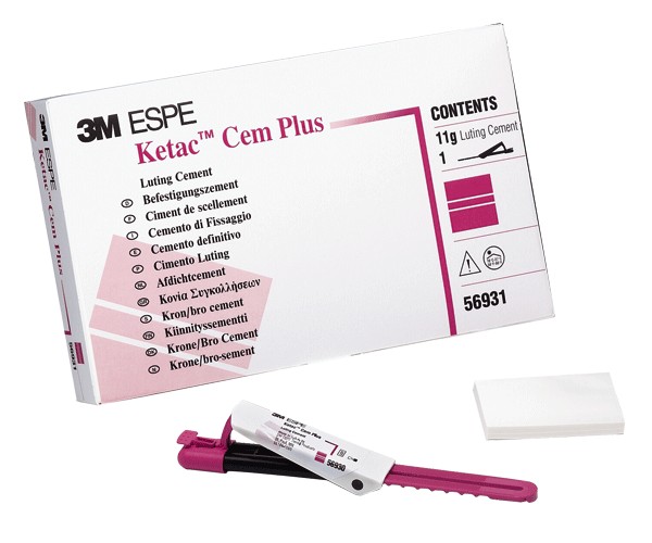Resin-modified Glass Ionomer Cement with high fluoride release. Indicated for metal/ceramic crowns and bridges, inlays, endodontic posts, orthodontic applications, and ceramic restorations. Features a very easy-to-use dispensing system with a paste-paste system. CONTENT: 11g clicker syringe, 1 mixing block, and 1 usage guide.