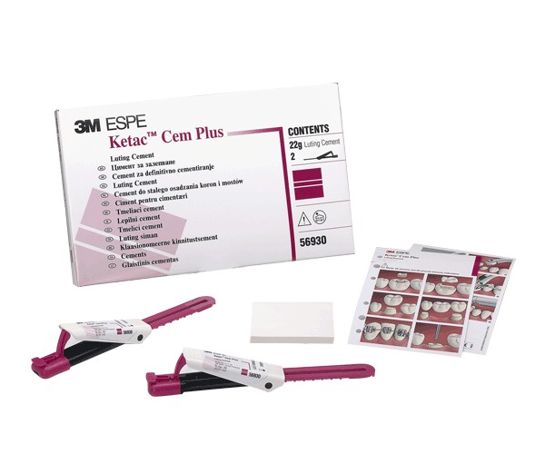 Resin-modified Glass Ionomer Cement with high fluoride release. Indicated for metal/ceramic crowns and bridges, inlays, endodontic posts, orthodontic applications, and ceramic restorations. Features a very easy-to-use paste-paste dispensing system. CONTENTS: 2 x 11 g clicker syringes, 1 mixing block, and 1 usage guide.