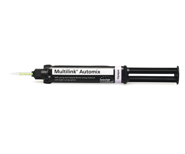Multilink is a universal self-adhesive cementation system with a light-curing option for the adhesive cementation of indirect restorations made of metal, metal-ceramic, ceramic without metal, and composite. Now with an improved formulation to make the removal of excess material even easier and faster. In just 10 minutes, Multilink Automix allows for a reliable and long-lasting bond with a wide variety of restorative materials. The single-step primer and automix syringe provide time and material savings.