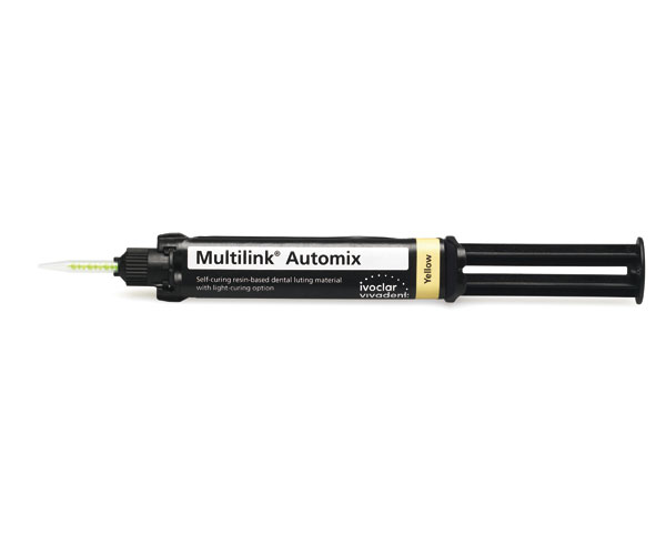 Multilink is a universal self-curing cementation system with a light-curing option for the adhesive cementation of indirect restorations made of metal, metal-ceramic, ceramic without metal, and composite. Now with an improved formulation to make the removal of excess material even easier and faster. In just 10 minutes, Multilink Automix allows for a reliable and long-lasting bond with a wide variety of restorative materials. The single-step primer and auto-mixing syringe provide time and material savings.