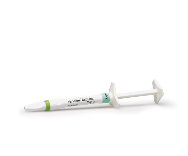 Dual-cure (DC) and light-cure (LC) composite for the permanent cementation of ceramic and composite restorations. Variolink Esthetic Try-in color testing paste is inspired by the aesthetic cementation composites Variolink II and Variolink Veneer. It features exceptional color stability thanks to the patented photoinitiator Ivocerin, which is completely free of amine-based co-initiators. Variolink Esthetic provides the foundation for durable and reliable aesthetic results. It is not subject to visible changes in its fluorescence color, which closely resembles that of natural teeth.