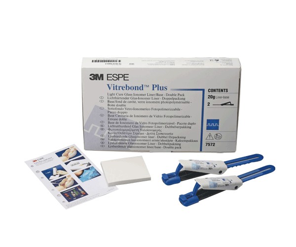 Vitrebond Plus is the first choice for dentists seeking the benefits of a cavity base with the advantages of paste dispensing. Vitrebond Plus provides a simpler mixing and dispensing process with the proven clicker system. Always homogeneous mixing without bubbles. CONTENTS: 2 clickers in a bag (2 x 10 g) + large mixing block.