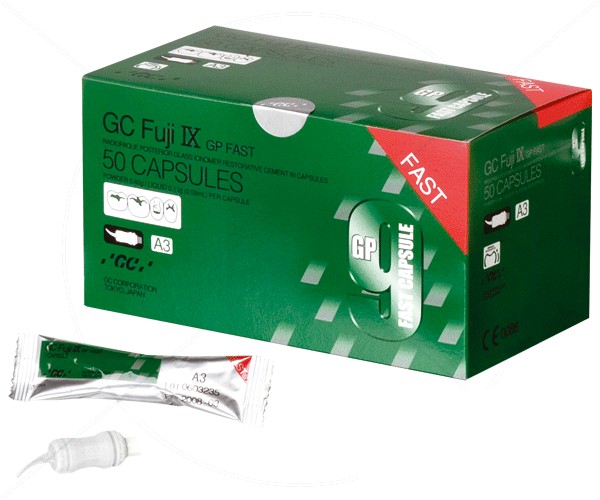 Ionómero de vidro para restaurações posteriores e reconstrução de muñones. Não necessita de adesivo nem de condicionamento ácido. Tempo de trabalho: 3 minutos. Embalagem com 50 cápsulas.
