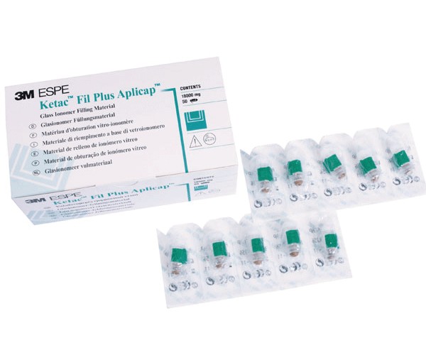 Photopolymerizable glass ionomer cement for Class III and V cavity restorations, small Class I restorations, temporary tooth restorations, provisional Class I and II restorations, and wedge-shaped defects. Radiopaque. High fluoride release.
