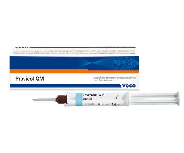 Eugenol-free cement with calcium hydroxide for provisional fixation of inlays, onlays, crowns, partial crowns, bridges, attachments, and posts. Temporary filling of small cavities.