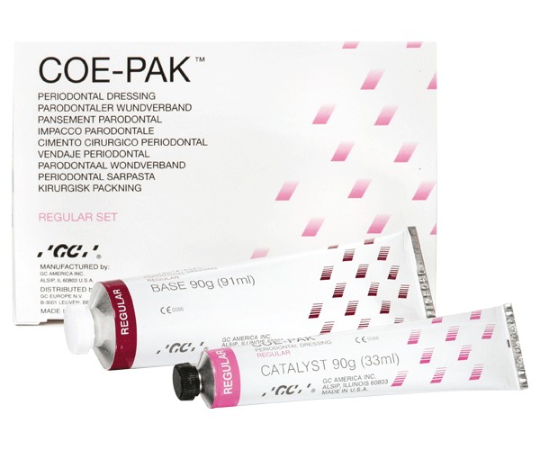 Preparación periodontal en tubos. Material en dos componentes para la cicatrización de heridas después de la cirugía para cubrir las heridas y las suturas para estabilizar los dientes flojos.