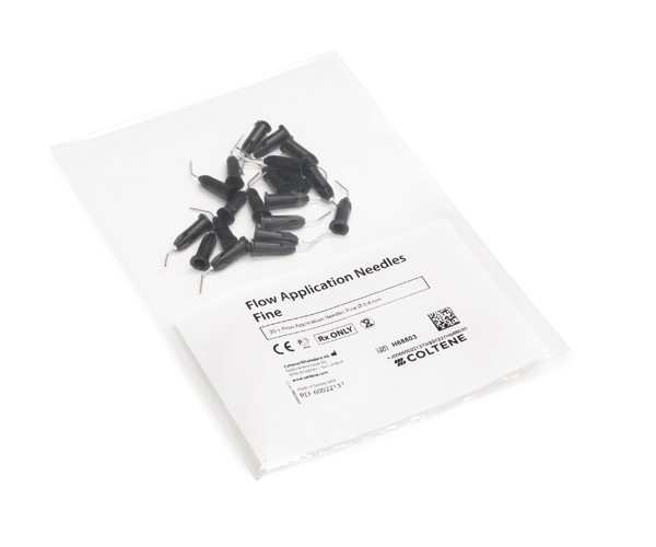 BRILLIANT EverGlow Flow comes with two types of application needles. In addition to the standard size (Ø 0.8mm) already known from SYNERGY D6 Flow, a fine size (Ø 0.4mm) enriches the BRILLIANT EverGlow Flow accessory range. The new needle allows for an even more precise application of the flowable material when high accuracy is required.