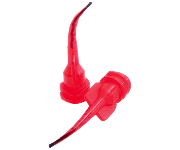 Ponta totalmente plástica (ø 107 mm) com conduto helicoidal interno e externo com escova. Cor vermelho transparente. Para aplicar materiais viscosos esfregando. O seu conduto helicoidal interno está desenhado para aumentar a fluidez do material. Extremo com escova de fibras de comprimento ajustável: puxar para aumentar o comprimento das fibras e obter um efeito mais suave ou empurrar para encurtar e aumentar um efeito de maior rigidez.