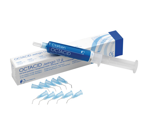 Octacid is a high-quality etching gel with a viscosity specially designed for optimal performance and handling characteristics. It is thixotropic and therefore does not run on the tooth or exposed tissue. It is formulated to rinse off completely and easily without leaving any residue. Dentin and enamel are etched in 15 to 20 seconds. The curved needles provide precise placement of the material on dental surfaces. Contents: 1 syringe of 12 g + 10 ultra-fine pre-curved metal cannulas for better dosing.