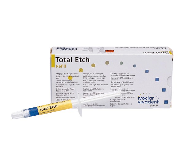37% phosphoric acid gel. Indicated for the following techniques: total etching, partial etching, fissure sealing, bracket bonding, dental jewelry (Skyce), and adhesive bonding. Jumbo syringe for storing larger quantities of the gel in stock.