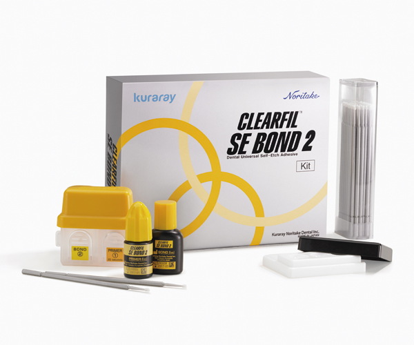 Two-step self-etching light-curable adhesive with an improved catalyst system for stronger and more durable bonds. The new photoinitiator provides more free radicals, resulting in a higher conversion of monomer to polymer. Easy to use. No shaking or rubbing required. Dual curing in combination with DC Activator (3-5µm film thickness). The kit contains: Primer 5 ml + Bond 6 ml + 100 applicator brushes + 1 mixing plate + 1 cap + case.