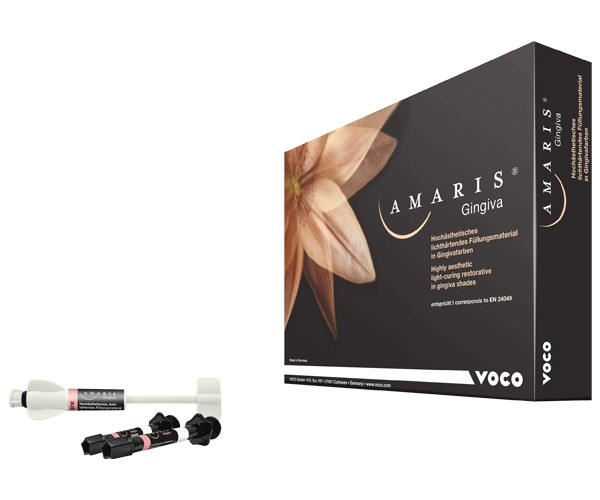 Photopolymerizable filling material with high aesthetics in gingival colors. The only high-aesthetic composite for chairside restoration with individually adapted gingival colors. A base color combined with 3 opaque mixing colors that can reproduce almost all gingival shades. Exposed tooth necks after gingival recessions as well as wedge-shaped defects in the cervical area are functionally and aesthetically manageable. The latest composite technique: Know-how of Amaris® in gingival colors. CONTENT: 3 NDTS® jars x 12 g (white light dark) base color natural in one 4 g Amaris jar + accessories.