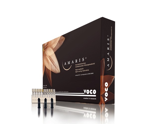 Photopolymerizable restorative material with high aesthetics. Indications: aesthetic restorations of anterior teeth of classes III, IV, and V. Aesthetic restorations of posterior teeth of classes I, II, and V. Reconstruction of anterior teeth damaged by trauma. Direct and indirect composite veneers for discolored anterior teeth. Corrections of shape or color for aesthetic reasons. Repairs of high aesthetic ceramics and veneers. Direct and indirect composite inlays. Rerestoration of anterior teeth. CONTENT: 4 caps x 0.25 g (o1, o2, o3, o4, o5, tl, tn, td) 2 syringes x 18 g AMARIS Flow (htho) + accessories.