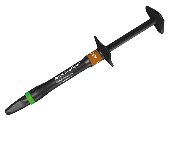 Tetric Evoflow is the new nano-optimized fluid composite and successor to Tetric Flow. Tetric Evoflow exhibits optimal fluid behavior, reaching even hard-to-access areas, making it ideal as the first layer under normal viscosity composites such as EvoCeram. At the same time, it is also resistant when required, making it suitably indicated for small cavities as well as Class III and V cavities. Tetric Evoflow is also indicated for fissure sealing and adhesive cementation. Tetric Evoflow demonstrates an unprecedented radiopacity of 360% Al for shades A-D.