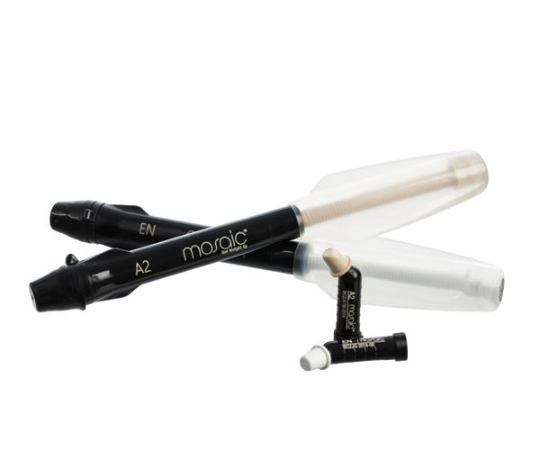 Mosaic is a nanohybrid composite with a Bis-GMA matrix and radiopaque properties, which, thanks to its chemical formulation, is suitable for performing any type of restoration, from the simplest to the most complex, in both anterior and posterior teeth. This new chemical composition provides Mosaic with excellent handling, preventing adherence to the instrument and ensuring optimal control during use, as well as a perfect balance between high aesthetics and the longevity of the restoration. Polishing is another important feature of Mosaic; its high polish and shine can be easily achieved with any composite polishing system. The syringe is equipped with a cap for easy one-handed operation and prevents cross-contamination by keeping the syringe thread concealed.