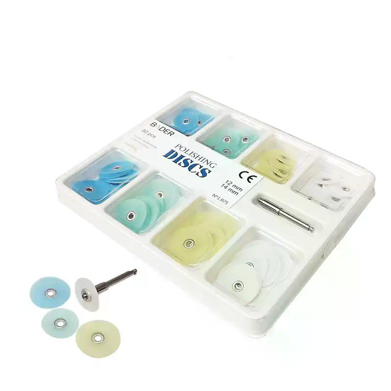 - Finishing and polishing system consisting of discs for contouring and polishing of composite surfaces and other restoration materials.