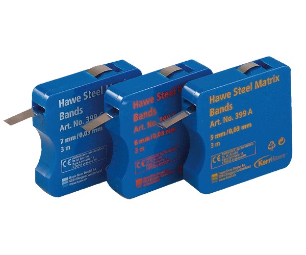 Stainless steel matrix tape. Includes a convenient dispenser.