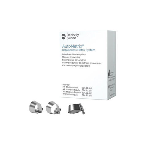 Sistema de matrices metálicas pre-moldeadas y contorneadas para marcar más fácilmente el cuello gingival.