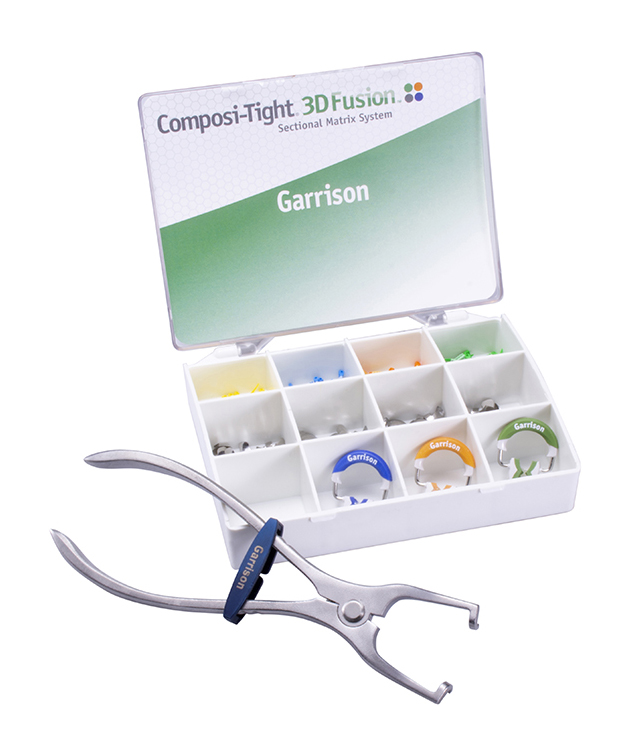 Composi-Tight 3D Fusion Matrix System including 1 FX400 ring, 1 FX500 ring, 1 FX600 ring, 70 Firm bands (20 each of FXH100, FXH175, FXH200, 5 each of FXH150, FXH300), 80 Fusion wedges (20 each), 1 FXP01