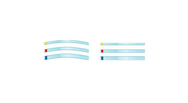 Tiras de poliéster transparente Hawe com extremos codificados por cores, de 0,05 mm de espessura. Melhor controlo visual da manipulação e aplicação do material composto. Melhor fotopolimerização do composto através da matriz.