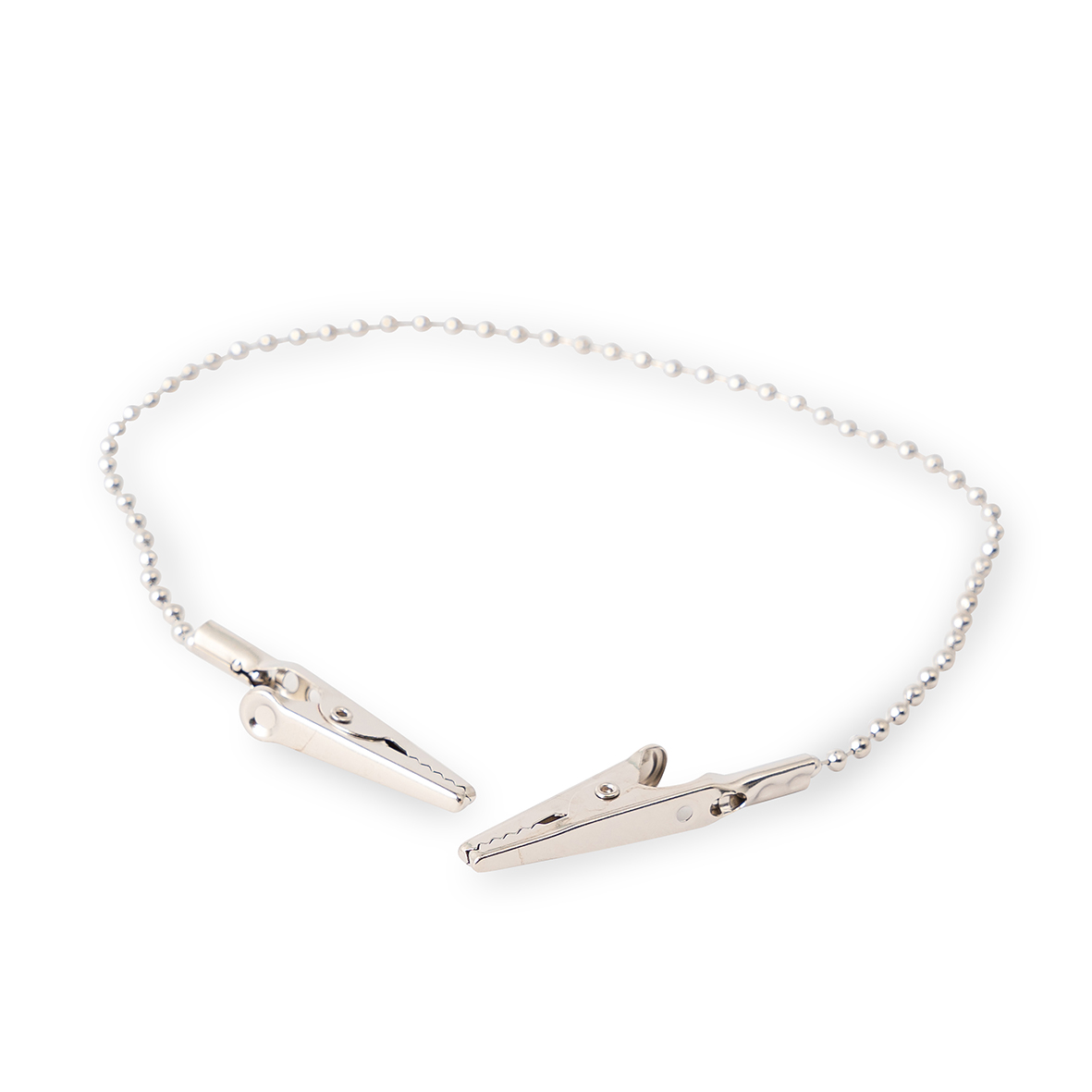 Clamps for holding bibs in the dental clinic. Made of chrome silver and without closure.