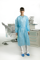Bata descartável estéril de tecido não tecido, com punho de OMNIA. Bata hidrorrepelente "SPUNBOND" com punho de algodão. Indicada para a prática rotineira breve, segunda fase cirúrgica e como complemento à proteção do paciente. Tecido não tecido 30 gr/m². Tamanho único. Embalada individualmente.