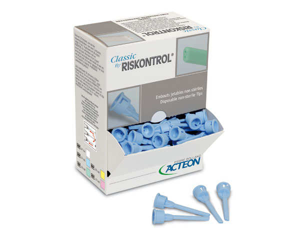 Disposable nozzles for air and water syringes. They are flexible and can be bent into the desired shape. With separate channels for air and water, they ensure completely dry air. Compatible with all syringes on the market. The Riskontrol nozzles have been improved while maintaining their unique advantages. The new Riskontrol nozzle is compatible with both the old adapter and the new adapter. The adapter is ONLY compatible with the new Riskontrol nozzles. Benefits: Improved grip: facilitates placement and removal with more flexible nozzles that are easier to curve. New fastening system: simpler placement of the nozzle onto the adapter, greater protection for the air and water tubes, and no risk of accidental nozzle expulsion.