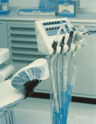 Protetor descartável para cobrir as mangueiras e evitar a sua contaminação. Um prático adesivo na parte final permite a sua fixação.
