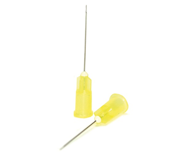 Aguja metálica fina y roma con un extremo antiobturante. Cuenta con ventilación a un lado para irrigación lateral evitando la extrusión de fluidos a través del ápice.