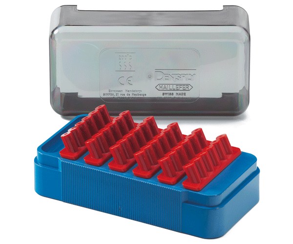 Blue empty box with 6 compartments to accommodate up to 6 inserts, each selectable. Sterilizable.