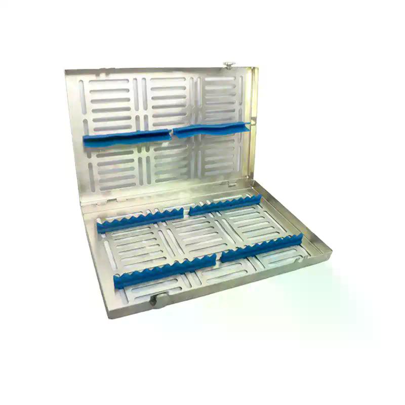 Made of stainless steel and blue silicone, the cassettes are compatible with all sterilization systems.