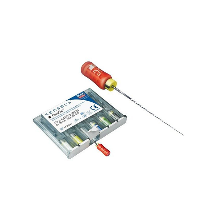 Limas de Dentsply-Maillefer. Flexofile-senseus e Profinder-senseus (limas de passagem). A novidade neste caso são os seus cabos ergonómicos de silicone. O toque é muito mais suave do que com os cabos convencionais.