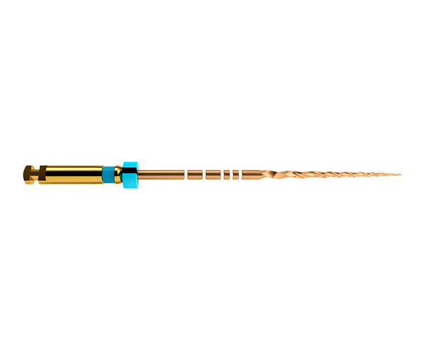 New Protaper Gold instruments with progressive taper. Made of nickel-titanium, they represent the latest generation in rotary mechanical instrumentation for endodontics, allowing for rapid and efficient preparation of root canals while respecting their anatomy. Advantages: The multiple taper enhances flexibility, cutting efficiency, and reduces stress - Long and curved canals are shaped using only 3 to 4 instruments.