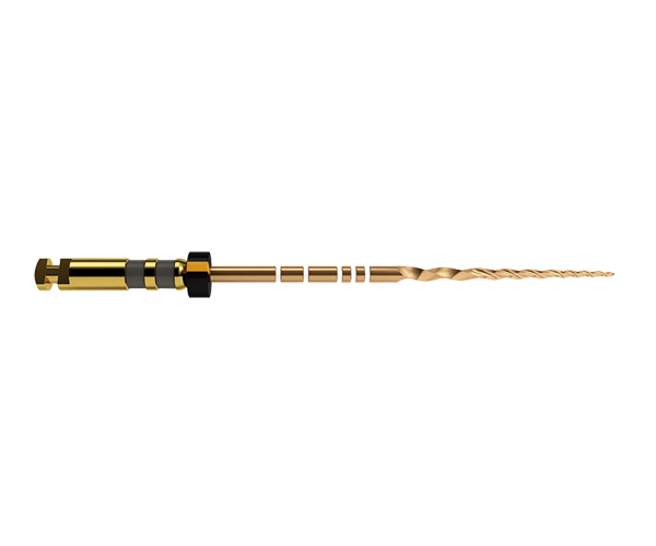 New Protaper Gold instruments with progressive taper. Made of nickel-titanium, they represent the latest generation in rotary mechanical instrumentation for endodontics, allowing for rapid and efficient preparation of root canals while respecting their anatomy. Advantages: The multiple taper enhances flexibility, cutting efficiency, and reduces stress - Long and curved canals are shaped using only 3 to 4 instruments.