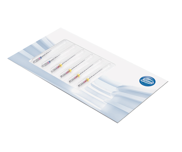 A retreatment of the canal or orthograde preparation aims to completely remove the existing filling material, reach areas that were left untreated during a previous procedure, and thus ensure complete disinfection of the root portion. With the NiTi Endo ReStart file system, this task can be performed effectively yet controlled in just a few steps. The Endo ReStart Opener has a constant taper of 10%, a diameter of 0.30 mm, a length of 15 mm, a short active part of 5 mm, a tip with 4 surfaces, is sterile, and reusable. The Endo ReStart Files have a constant taper of 5%, a diameter of 0.25 mm, a length of 25 mm, a tip with 2 surfaces, are sterile, and for single use. 2x RE10L15.204.030, 4x RE05L25.204.025.