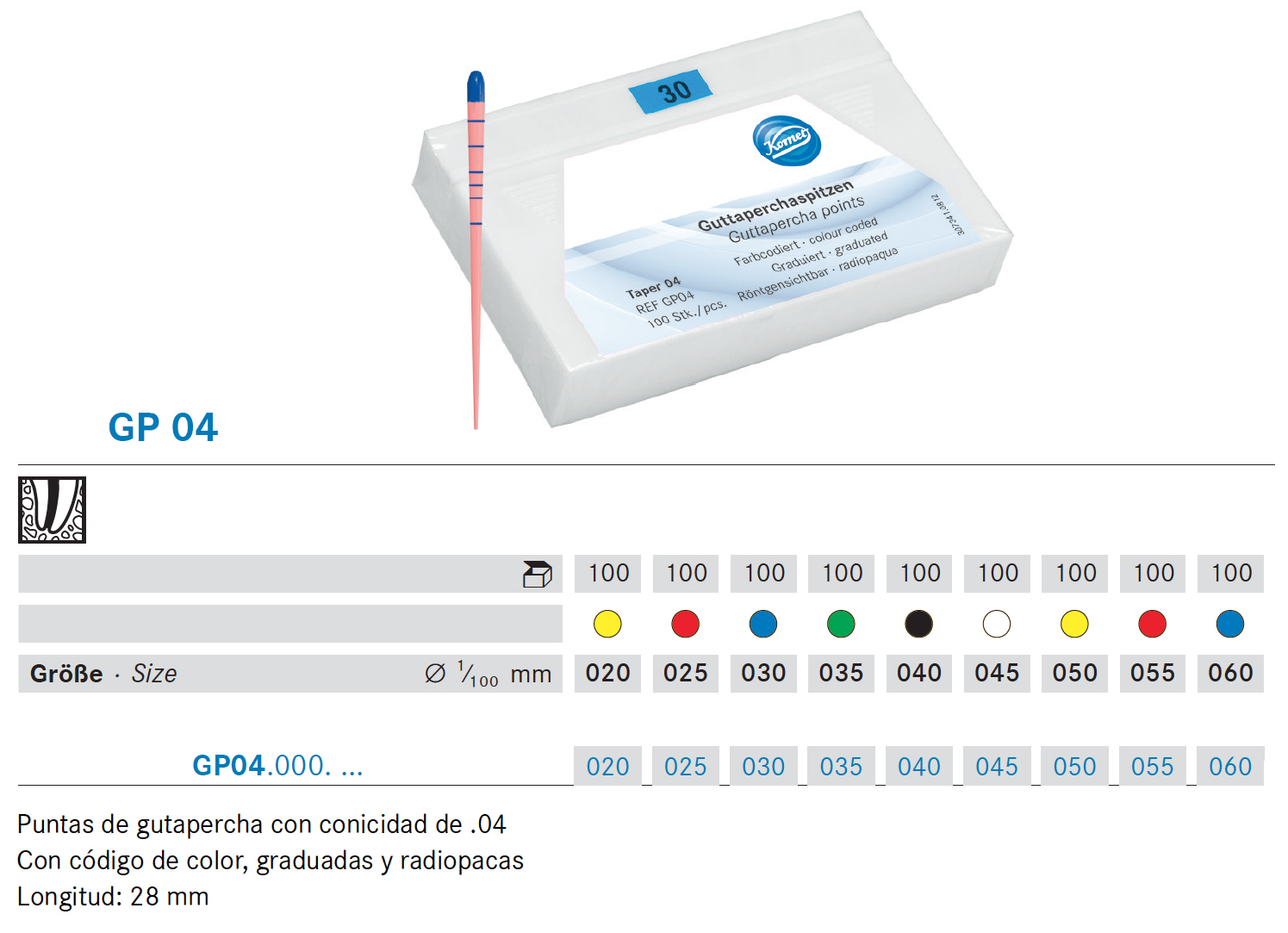 Paper points with a taper of 02, size 015, and depth graduation. Color-coded with a length of 28mm.
