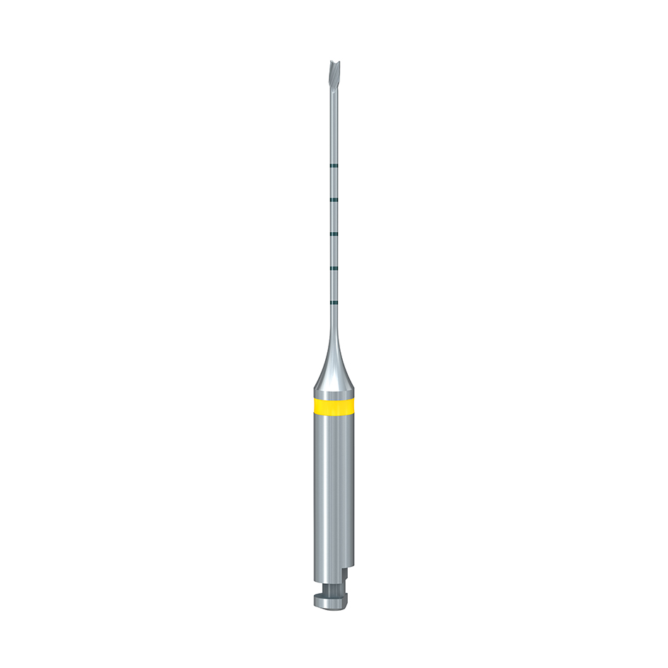 The Endo Rescue bur RKT is an extremely fine drill that is placed over the previously marked fragment with the RKP bur and removes it by adhering to the drill due to the accumulated dentin debris. ISO: 101 - Maximum Revolution: 20000 rpm - Shape: Diameter 070 - Contra-angle Chuck Type: 0 - Grain Type: 0 - Application: Extraction Drill for Files - Packaging Quantity: 2 pcs