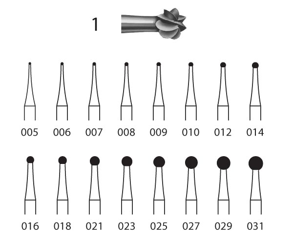Steel burs for cavities ISO: 100 - Maximum Speed: 40,000 rpm - Shape: BALL Diameter 012 - Contra-angle Shank 0 Grain Type: 0 - Application: Dentin Removal - Packaging Quantity: 10 pcs