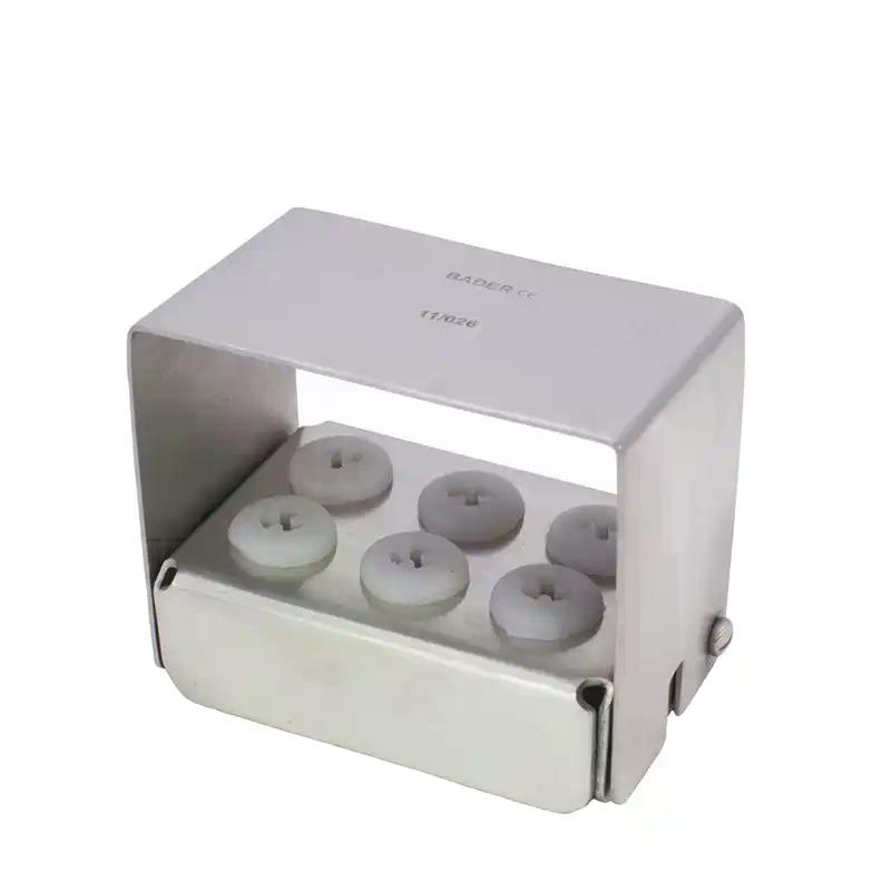 Práctico fresero de acero inoxidable que contiene 6 agujeros para colocar insertos, limas, fresas de contra ángulo, taladros de implante...