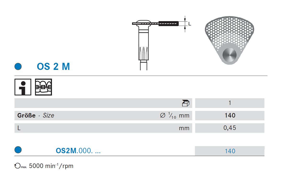 The new OS30 Komet oscillating contra-angle and Komet OS segmented discs have caused a revolution in maxillofacial surgery. This system ensures excellent safety during stripping. The segmented discs that oscillate at 60º have a rotational angle of only 30º. This allows for space savings and ensures visibility without obstructing the work area, thereby minimizing the risk of damaging soft tissue. ISO: 103 - Maximum Revolution: 5400 rpm - Shape: Diameter 140 - Chuck 000 STANDARD Grain Type: STANDARD - Application: Stripping Discs - Packaging Quantity: 1 pc.